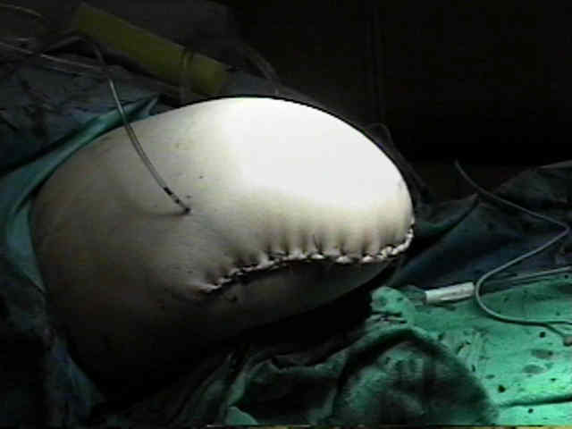 • adductor flap is sutured to and across the end of the femur (utilizing the drill holes) with care taken to keep the femur in maximum adduction as the adductors are tied down;